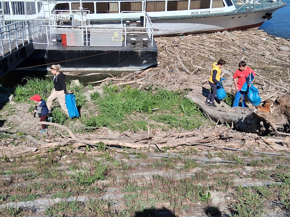 A csapat indulása előtt készített kép ezúttal is csalóka: a kezdést követően nagyon sokan csatlakoztak a szemétszedőkhöz, így tíz óra körül már mintegy harminc szemeteszsákot lobogtatott a meg-megerősödő szél a résztvevők kezében. Örvendetes volt látni, hogy a felnőttek mellett óvodáskorú gyermeket nevelő családok is elfogadták a programra szóló meghívást, és a gyerekek kitűnő hangulatban, jókedvűen vették ki részüket a Dunapart takarításából.