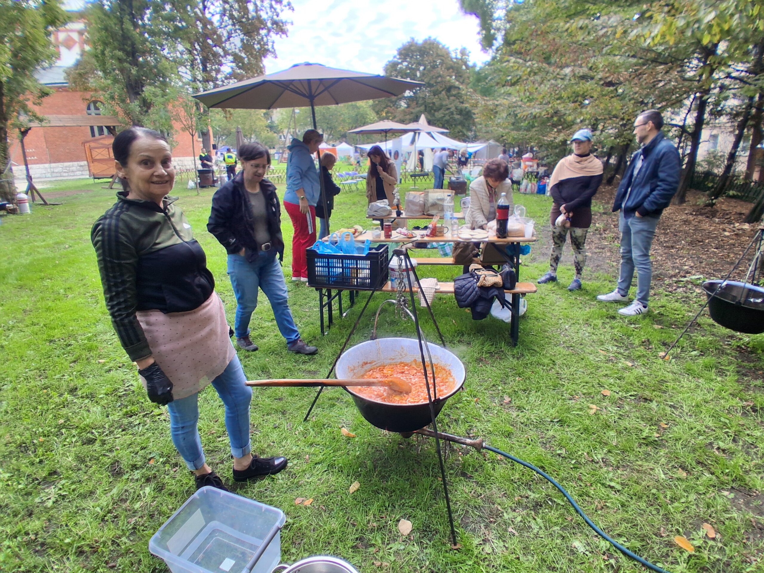 A gazdag látnivalók és szórakozási lehetőségek sorát ezúttal is a főzőversenyre érkező csapatok térfoglalása, majd a Katasztrófavédelem Központi Zenekarának műsora vezette be, majd felszállt a füst a kiolvasztásra szánt szalonnát, apróra vágott hagymát, miegymást tartalmazó méretes bográcsok és üstök alól, és a levegőt ínycsiklandozó illatok töltötték be. Kitűnő helyen, a templomkert Tomori utcai bejárata közelében kapott helyet az önkormányzat Szociális Szolgáltató Központjának standja, ahol az idősek klubhálózatának négy szervezete: a Nosztalgia Ház, az Őszikék, az Évgyűrűk és a Reménysugár Idősek Klubjai tették közszemlére a kézműves foglalkozásaik alkalmával készített sálakat, kistáskákat, szobadíszeket és ajándéktárgyakat, amelyek néhány óra alatt csaknem maradéktalanul gazdára találtak.
